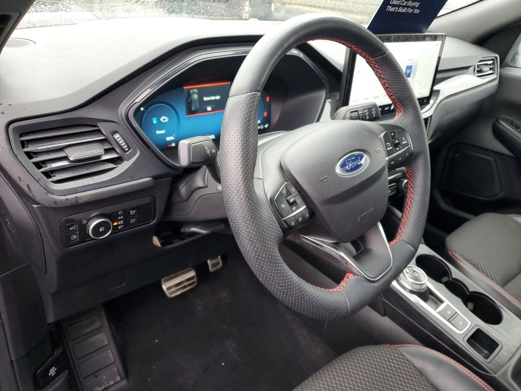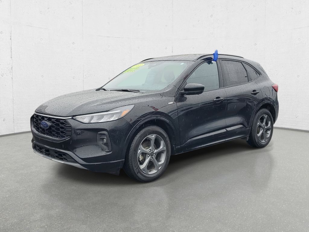Certified. Agate Black Metallic 2023 Ford Escape Hybrid ST-Line Select AWD eCVT 2.5L iVCT 2023 Ford Escape Hybrid, *FORD CERTIFED!*, *AWD*, *ONE OWNER*, *NAVIGATION*, *REMOTE START*, *BACK UP CAMERA*, TECH PACK #2, PANORAMIC VISTA ROOF, HEATED STEERING WHEEL, POWER LIFTGATE, Escape Hybrid ST-Line Select, 4D Sport Utility, 2.5L iVCT, eCVT, AWD, Agate Black Metallic, Ebony w/Heated ActiveX Trimmed Front Sport Contour Bucket Seats, 10-Way Power Driver's Seat, 12.3" Productivity Screen in Instrument Cluster, 360-Degree Camera w/Split View, 6 Speakers, 6-Way Power Passenger Seat, Air Conditioning, Auto High-beam Headlights, Automatic temperature control, Black Roof-Rack Side Rails, Body Color Mirrors, Delay-off headlights, Electronic Fuel Door Release, Equipment Group 400A, Exterior Parking Camera Rear, Ford Co-Pilot360 Assist 2.0, Front dual zone A/C, Front fog lights, Fully automatic headlights, HD Radio, Heated steering wheel, Heated Vinyl/Cloth Front Sport Contour Bucket Seats, Intelligent Adaptive Cruise Control w/Stop-and-Go, Memory Package, Neutral Towing Capability, Panoramic Vista Roof, Pedestrian Alert Sounder, Power Liftgate, Power windows, Radio: B&O Sound System by Bang & Olufsen, Rear Parking Sensor, Rear window defroster, SecuriCode Keyless Entry Keypad, SYNC 4 w/Enhanced Voice Recognition, Tech Pack #2, Telescoping steering wheel, Wheels: 18" Rock Metallic Painted Aluminum, Wireless Charging Pad.