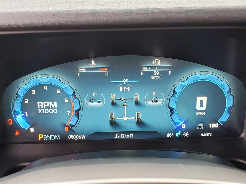 This Vehicles features 18" Bright Machined Aluminum Wheels, 3.73 Axle Ratio, 4-Wheel Disc Brakes, 7 Speakers, ABS brakes, Air Conditioning, Alloy wheels, AM/FM radio: SiriusXM with 360L, AM/FM Stereo, Auto High-beam Headlights, Auto-dimming Rear-View mirror, Automatic temperature control, Brake assist, Compass, Connected Navigation, Delay-off headlights, Driver door bin, Driver vanity mirror, Dual front impact airbags, Dual front side impact airbags, Electronic Stability Control, Emergency communication system: 911 Assist, Exterior Parking Camera Rear, Front anti-roll bar, Front Bucket Seats, Front Center Armrest, Front dual zone A/C, Front fog lights, Front reading lights, Front wheel independent suspension, Fully automatic headlights, Heated door mirrors, Heated front seats, Heated Leather-Trimmed/Vinyl Bucket Seats, Heated steering wheel, Illuminated entry, Integrated roll-over protection, Leather Shift Knob, Low tire pressure warning, Navigation system: Connected Navigation, Occupant sensing airbag, Outside temperature display, Overhead airbag, Overhead console, Panic alarm, Passenger door bin, Passenger vanity mirror, Power door mirrors, Power driver seat, Power passenger seat, Power steering, Power windows, Radio data system, Rear seat center armrest, Remote keyless entry, Security system, SiriusXM w/360L, Speed control, Split folding rear seat, Steering wheel mounted audio controls, SYNC 4, Tachometer, Telescoping steering wheel, Tilt steering wheel, Traction control, Trip computer, Variably intermittent wipers, and Voltmeter.