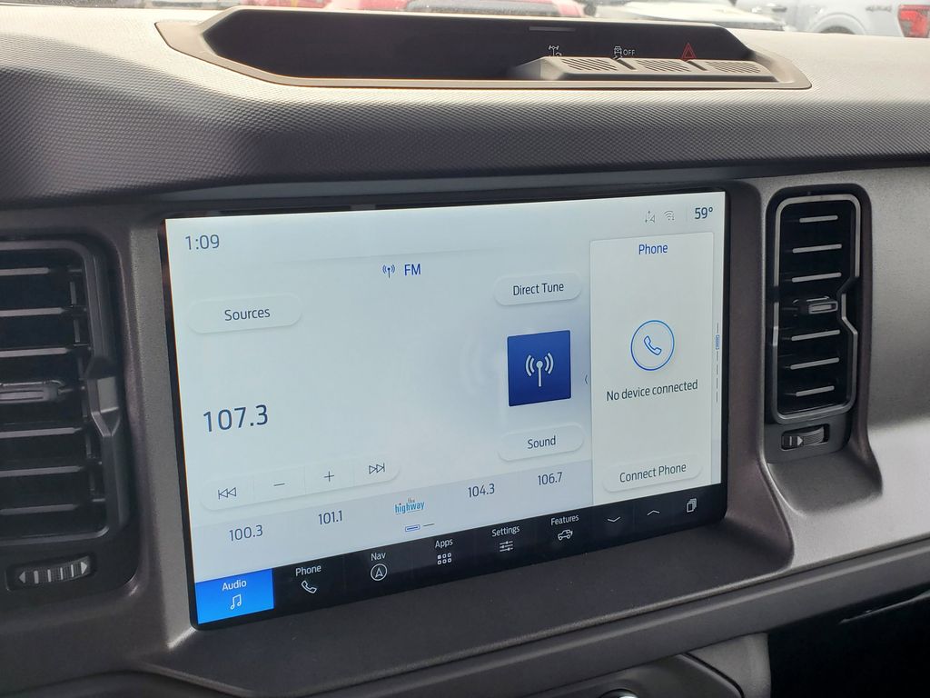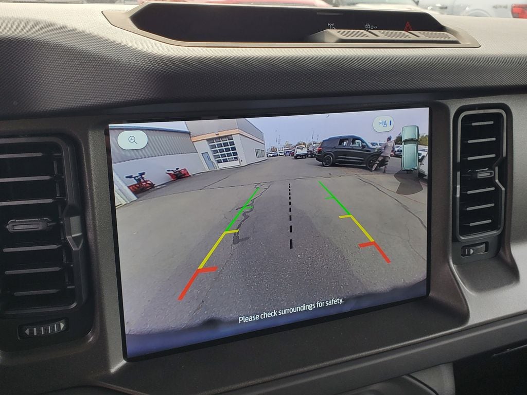 This Vehicles features Equipment Group 222A Mid Package (2-Door Intelligent Access w/Lock/Unlock, Ambient Footwell Lighting, Connected Navigation, Dr & Pass Illuminated Sliding Visor Vanity Mirrors, Dual Smart Charging USB Ports, Dual-Zone Electronic Automatic Temperature Control, Front Row Heated Seats, Power Outlet - Back Side of Center Floor Console, and Rear Parking Sensors), 4-Wheel Disc Brakes, 4.46 Axle Ratio, 7 Speakers, ABS brakes, Air Conditioning, Alloy wheels, AM/FM radio: SiriusXM with 360L, AM/FM Stereo, Auto High-Beam Headlamps, Auto High-beam Headlights, BLIS Blind Spot Information System, Brake assist, Carbonized Gray Molded-In-Color Hard Top, Cloth Bucket Seats, Compass, Delay-off headlights, Driver door bin, Driver vanity mirror, Dual front impact airbags, Dual front side impact airbags, Electronic Stability Control, Emergency communication system: 911 Assist, Exterior Parking Camera Rear, Front & Rear Floor Liners, Front anti-roll bar, Front Bucket Seats, Front Center Armrest, Front reading lights, Front wheel independent suspension, Fully automatic headlights, Hard Top Sound Deadening Headliner, Heated door mirrors, Illuminated entry, Integrated roll-over protection, Lane-Keeping System, Leather Shift Knob, Low tire pressure warning, Occupant sensing airbag, Outside temperature display, Overhead airbag, Overhead console, Panic alarm, Passenger door bin, Passenger vanity mirror, Power door mirrors, Power steering, Power windows, Pre-Collision Assist w/Automatic Emergency Braking, Radio data system, Rear-View Camera, Rear-Window Defroster & Washer, Remote keyless entry, Security system, Side Step, SiriusXM w/360L, Speed control, Split folding rear seat, Steering wheel mounted audio controls, SYNC 4, Tachometer, Telescoping steering wheel, Tilt steering wheel, Traction control, Trip computer, Variably intermittent wipers, and Wheels: 17" Carbonized Gray-Painted Aluminum.