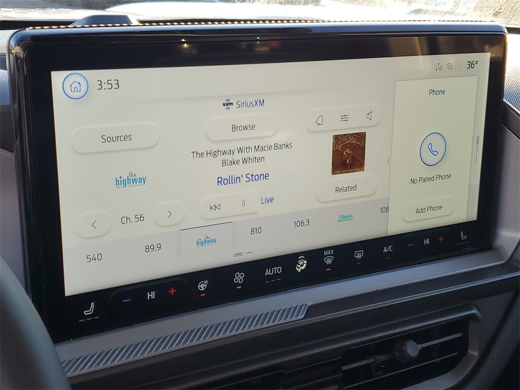 This Vehicles features 4-Wheel Disc Brakes, 6 Speakers, ABS brakes, Air Conditioning, Alloy wheels, AM/FM radio: SiriusXM, AM/FM Stereo, Auto High-beam Headlights, Auto-dimming Rear-View mirror, Automatic temperature control, Brake assist, Compass, Delay-off headlights, Driver door bin, Driver vanity mirror, Dual front impact airbags, Dual front side impact airbags, Electronic Stability Control, Emergency communication system: SYNC 4 911 Assist, Four wheel independent suspension, Front anti-roll bar, Front Bucket Seats, Front Center Armrest, Front Driver/Passenger Seat Back Map Pockets, Front dual zone A/C, Front fog lights, Front reading lights, Fully automatic headlights, Garage door transmitter, Heated door mirrors, Heated front seats, Heated steering wheel, Illuminated entry, Knee airbag, Low tire pressure warning, Memory seat, Occupant sensing airbag, Outside temperature display, Overhead airbag, Overhead console, Panic alarm, Passenger door bin, Passenger vanity mirror, Power door mirrors, Power driver seat, Power passenger seat, Power steering, Power windows, Premium Trimmed Front Bucket Seats w/Ebony/Roast, Radio data system, Rain sensing wipers, Rear anti-roll bar, Rear Parking Sensors, Rear reading lights, Rear seat center armrest, Rear window defroster, Rear window wiper, Remote keyless entry, Security system, SiriusXM, Speed control, Speed-sensing steering, Speed-Sensitive Wipers, Split folding rear seat, Steering wheel mounted audio controls, SYNC 4 w/Enhanced Voice Recognition, Tachometer, Telescoping steering wheel, Tilt steering wheel, Traction control, Trip computer, Variably intermittent wipers, and Wheels: 18" Ebony Black-Painted Aluminum. Recent Arrival! 25/30 City/Highway MPG