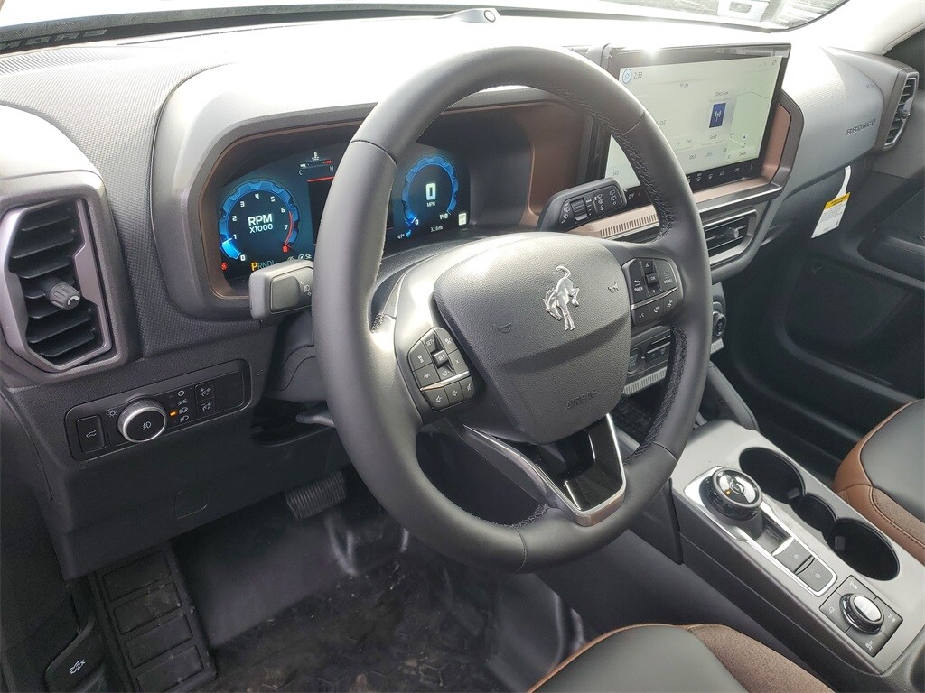 I got a 2025 Big Bend with the black diamond off road package. The steel modular front and rear in combination with bush guard gives this year model. A very aggressive off road look. With the ability to easily mount accessories and power them with the factory installed auxiliary switches. Hitch receiver seamlessly mounted into the rear steel bumper flanked by some very chunky recovery points. The upgraded aluminum rims wrapped with Continental all-terrains. It make this the most capable bronco sport yet. The interior of the 2025 has been updated with a new 13 inch touchscreen with Android Auto and apple car play. The lines of the dash flow elegantly from the new infotainment screen to the new all digital 12 inch gauge chaster. Toggling through the different modes on the gauge chaster is very intuitive, and all the displays are laid out very cleanly. Moving from gauge chaster the center storage cubby just below the infotainment screen there is a wireless charger and USB/ USB-c ports. The passenger side of that same cubby gets a handle and a matching one on the roof just in case the driver bucks a little too much. The passenger also gets a mesh storage area. That leads us to the fact this vehicle has tons of storage options all throughout. You have pockets on the sides of the front two seat big enough for the latest new phones. Very generous door storage on all four doors plus huge glove box and center console with 12 volt outlet. The back side of the center console has air vents and another 12 volt outlet plus a 110 outlet. Now getting to the cargo area it is massive for a crossover SUV. With off road package you get a cargo management system and a very nice rubber mat. Under that there is a full size tire plus scissor jack and funnel to use with the capless filler system. On the liftgate there isa pair of very bright led lights turned on with a switch in the cargo area. This feature packed vehicle has tons awesome gadgets and hidden a little homages I spend all day just talk that. At the end of the day it is car. So how does it drive. It is wonderful, the steering and pedal response is beautiful. Rides very smooth and little to no road noise going down the highway. The active cruise control and co-pilot 360 have been very handy. The car literally drives itself most of the time. There is not enough good things I could same about this car. I love it and you pick one too. You will see what I mean. - 5.0