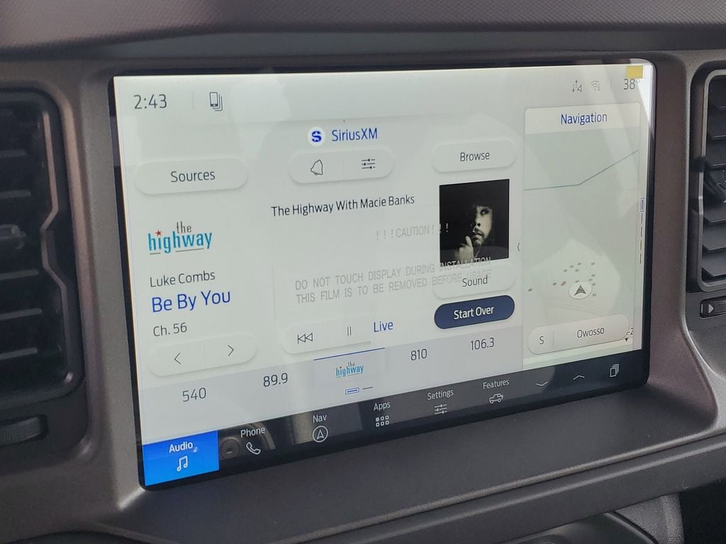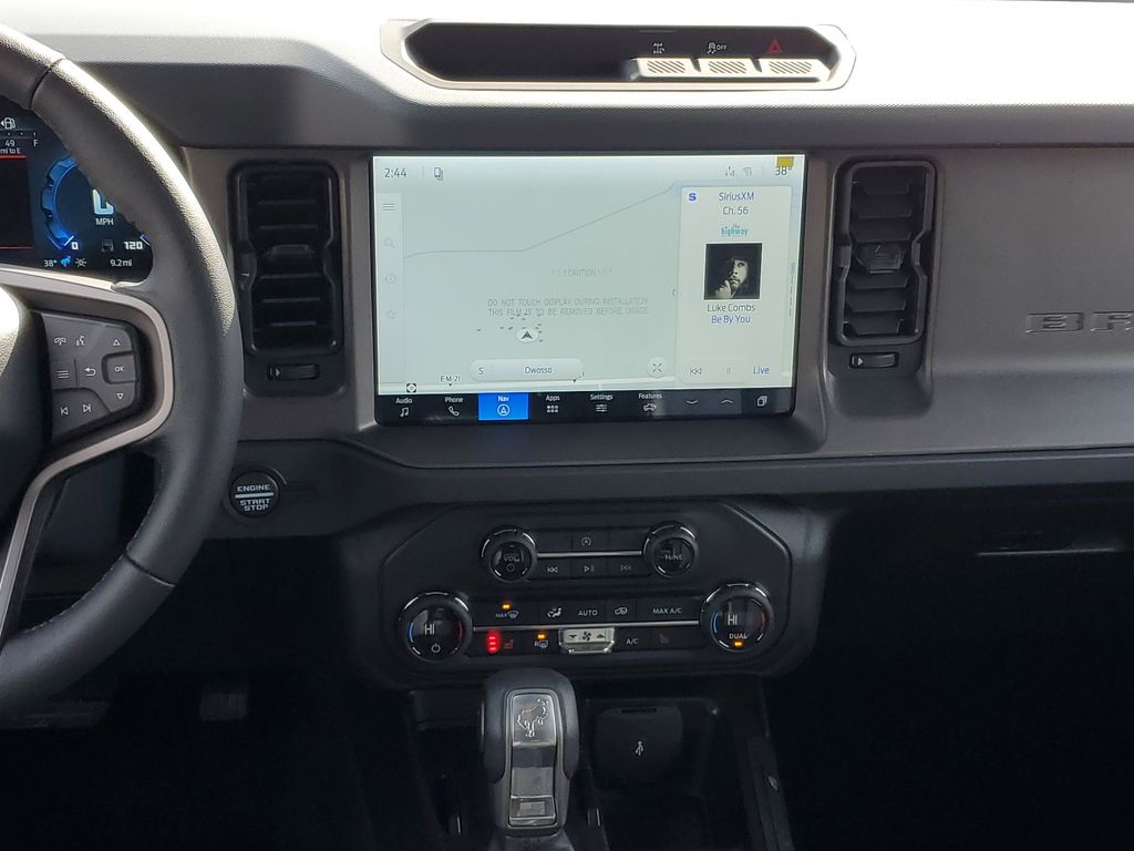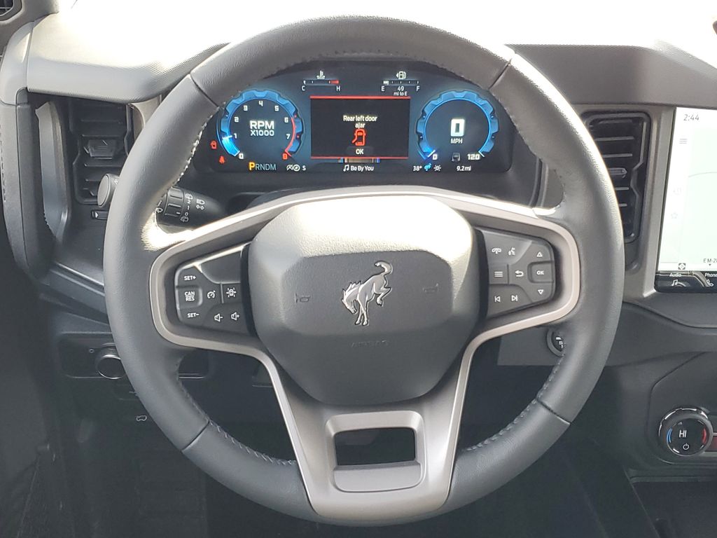 This Vehicles features Black Appearance Package (Black Molded-in-Color Door Handles, Black Molded-in-Color Fender Flares, Black Molded-in-Color Sideview Mirror Caps, and Black-Painted Molded-in-Color Grille), Equipment Group 222A Mid Package (2-Door Intelligent Access with Lock/Unlock, AM/FM Stereo, Ambient Footwell Lighting, Cloth Bucket Seats, Connected Navigation, Driver and Front Passenger Illuminated Sliding Visor Vanity Mirrors, Dual Smart Charging USB Ports, Dual-Zone Electronic Automatic Temperature Control, Front Row Heated Seats, Pro Power Onboard - 400W, Rear Parking Sensors, SiriusXM with 360L, SYNC 4, and Wheels: 17" Carbonized Gray-Painted Aluminum), Ford Connectivity Package (1-Year Included), 4-Wheel Disc Brakes, 4.46 Axle Ratio, 7 Speakers, ABS brakes, Air Conditioning, Alloy wheels, AM/FM radio: SiriusXM with 360L, Auto High-Beam Headlamps, Auto High-beam Headlights, BLIS Blind Spot Information System, Brake assist, Compass, Delay-off headlights, Driver door bin, Driver vanity mirror, Dual front impact airbags, Dual front side impact airbags, Electronic Stability Control, Emergency communication system: 911 Assist, Exterior Parking Camera Rear, Front anti-roll bar, Front Bucket Seats, Front Center Armrest, Front reading lights, Front wheel independent suspension, Fully automatic headlights, Hard Top Sound Deadening Headliner, Heated door mirrors, Illuminated entry, Integrated roll-over protection, Lane-Keeping System, Low tire pressure warning, Occupant sensing airbag, Outside temperature display, Overhead airbag, Overhead console, Panic alarm, Passenger door bin, Passenger vanity mirror, Power door mirrors, Power steering, Power windows, Pre-Collision Assist with Automatic Emergency Braking, Radio data system, Rear-View Camera, Rear-Window Defroster and Washer, Remote keyless entry, Security system, Shadow Black Painted Hard Top, Speed control, Split folding rear seat, Steering wheel mounted audio controls, Tachometer, Telescoping steering wheel, Tilt steering wheel, Traction control, Trip computer, and Variably intermittent wipers. Ready for delivery today!