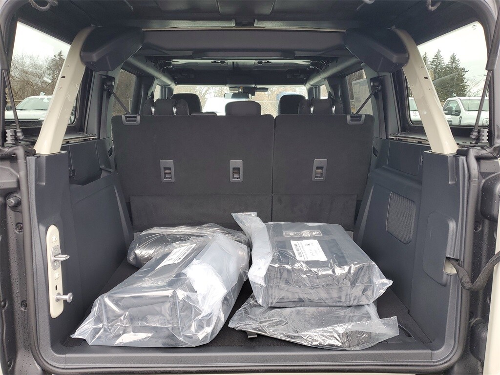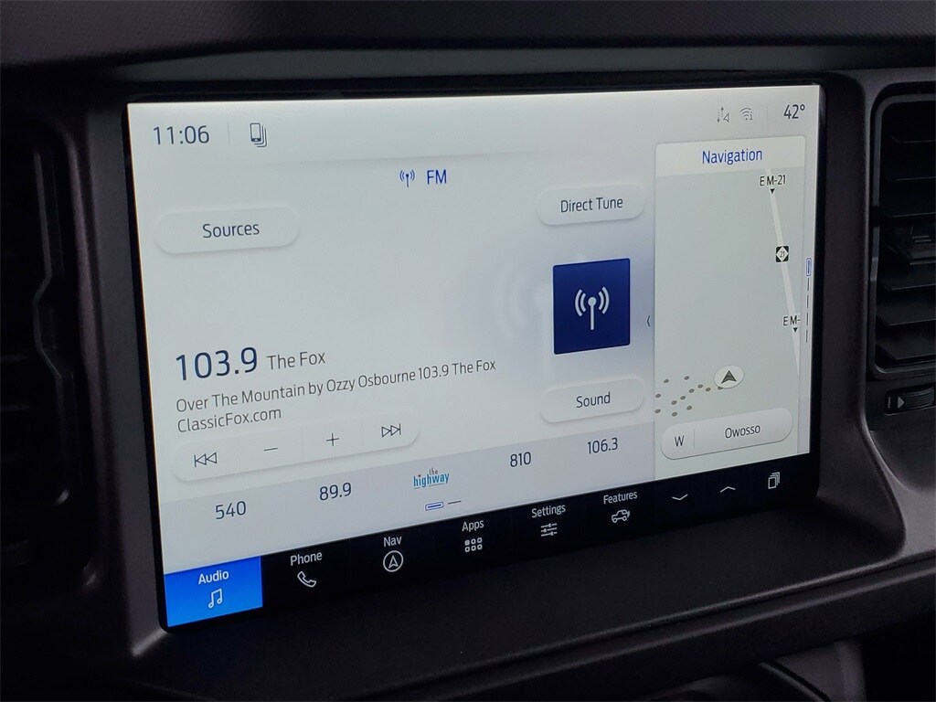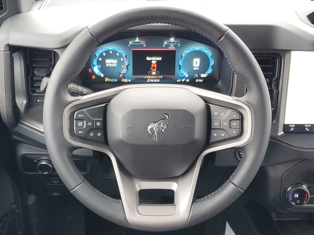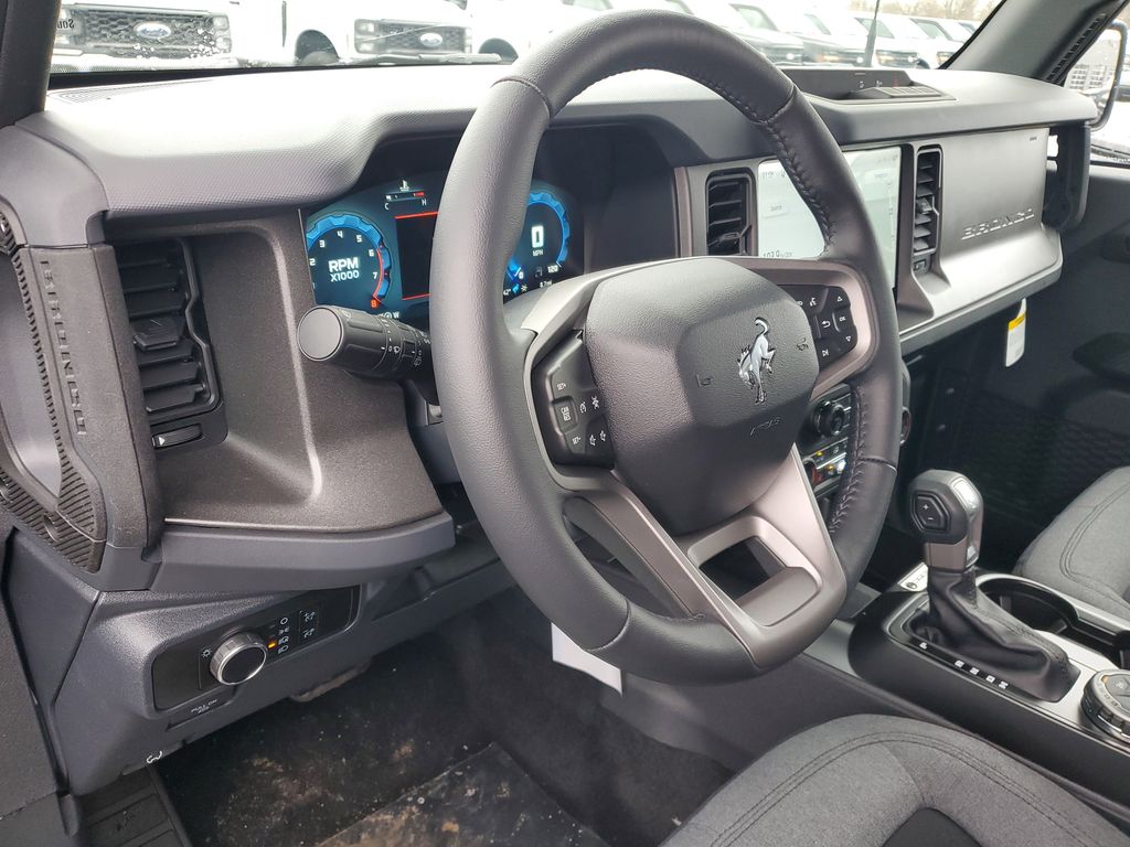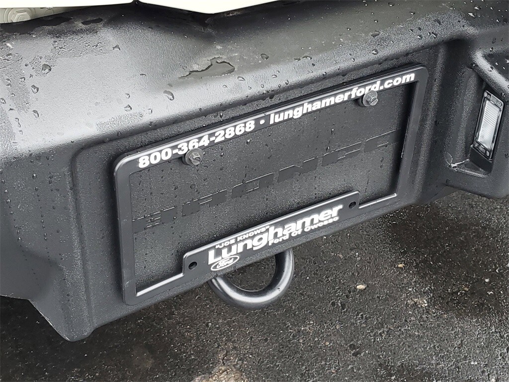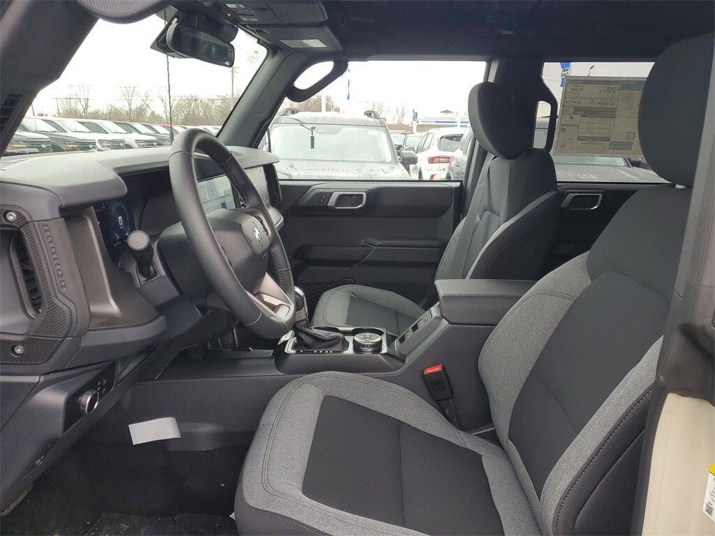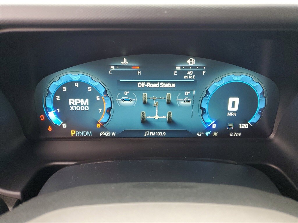 This Vehicles features Equipment Group 222A Mid Package (2-Door Intelligent Access with Lock/Unlock, AM/FM Stereo, Ambient Footwell Lighting, Cloth Bucket Seats, Connected Navigation, Driver and Front Passenger Illuminated Sliding Visor Vanity Mirrors, Dual Smart Charging USB Ports, Dual-Zone Electronic Automatic Temperature Control, Front Row Heated Seats, Pro Power Onboard - 400W, Rear Parking Sensors, SiriusXM with 360L, SYNC 4, and Wheels: 17" Carbonized Gray-Painted Aluminum), Ford Connectivity Package (1-Year Included), 4-Wheel Disc Brakes, 4.46 Axle Ratio, 7 Speakers, ABS brakes, Air Conditioning, Alloy wheels, AM/FM radio: SiriusXM with 360L, Auto High-Beam Headlamps, Auto High-beam Headlights, BLIS Blind Spot Information System, Brake assist, Carbonized Gray Molded-in-Color Hard Top, Compass, Delay-off headlights, Driver door bin, Driver vanity mirror, Dual front impact airbags, Dual front side impact airbags, Electronic Stability Control, Emergency communication system: 911 Assist, Exterior Parking Camera Rear, Front anti-roll bar, Front Bucket Seats, Front Center Armrest, Front reading lights, Front Row Top Panels and Door Storage Bags, Front wheel independent suspension, Fully automatic headlights, Heated door mirrors, Illuminated entry, Integrated roll-over protection, Lane-Keeping System, Low tire pressure warning, Occupant sensing airbag, Outside temperature display, Overhead airbag, Overhead console, Panic alarm, Passenger door bin, Passenger vanity mirror, Power door mirrors, Power steering, Power windows, Pre-Collision Assist with Automatic Emergency Braking, Radio data system, Rear-View Camera, Rear-Window Defroster and Washer, Remote keyless entry, Security system, Speed control, Split folding rear seat, Steering wheel mounted audio controls, Tachometer, Telescoping steering wheel, Tilt steering wheel, Traction control, Trip computer, and Variably intermittent wipers. Ready for delivery!
