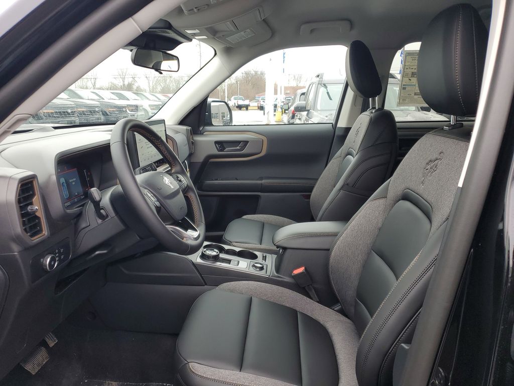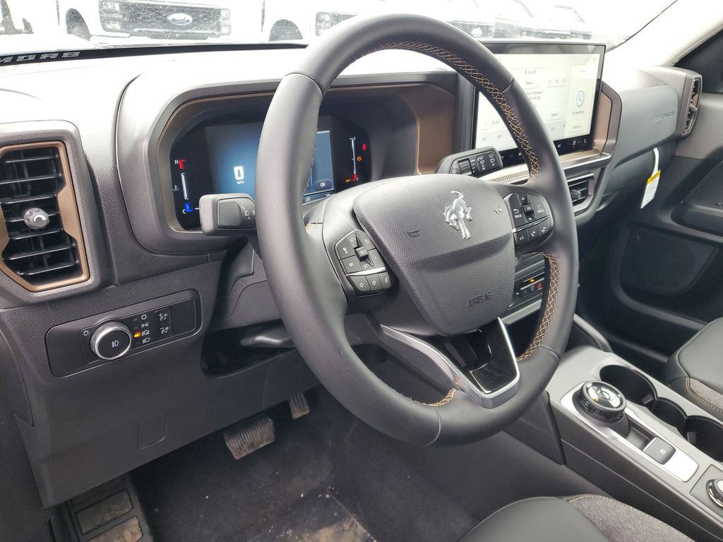 This Vehicles features Bronze Package (All Weather Floor Liners with Bronze Accents, Body-Color Door Handles, Bronze Badges, Bronze Vent Fender, Cargo Mat with Bronze Accents, Front Driver/Passenger Seat Back Map Pockets, Painted Shadow Black Roof, Premium Trimmed Front Sport Contour Bucket Seats, Premium Wrapped Steering Wheel, and Wheels: 17" Sinister Bronze-Painted Aluminum), Convenience Package (Heated 8-Way Power Driver's Seat and LED Fog Lamps), Ford Connectivity Package (1-Year Included), Internet access capable: 5G Modem - Ford Connectivity Package, 4-Wheel Disc Brakes, 6 Speakers, ABS brakes, Air Conditioning, Alloy wheels, AM/FM radio: SiriusXM with 360L, AM/FM Stereo, Apple CarPlay/Android Auto, Auto High-beam Headlights, Automatic temperature control, Brake assist, Carbon Black Grille with Black Painted BRONCO Lettering, Cloth with Easy-to-Clean Front Bucket Seats, Compass, Delay-off headlights, Driver door bin, Driver vanity mirror, Dual front impact airbags, Dual front side impact airbags, Electronic Stability Control, Emergency communication system: SYNC 4 911 Assist, Exterior Parking Camera Rear, Four wheel independent suspension, Front anti-roll bar, Front Bucket Seats, Front Center Armrest, Front reading lights, Fully automatic headlights, Heated door mirrors, Illuminated entry, Knee airbag, Liftgate with Black BRONCO SPORT Lettering, Low tire pressure warning, Occupant sensing airbag, Outside temperature display, Overhead airbag, Overhead console, Panic alarm, Passenger door bin, Passenger vanity mirror, Power door mirrors, Power steering, Power windows, Radio data system, Rear anti-roll bar, Rear Parking Sensors, Rear reading lights, Rear seat center armrest, Rear window defroster, Rear window wiper, Remote keyless entry, Security system, SiriusXM with 360L, Speed control, Speed-sensing steering, Speed-Sensitive Wipers, Split folding rear seat, Steering wheel mounted audio controls, SYNC 4 with Enhanced Voice Recognition, Tachometer, Telescoping steering wheel, Tilt steering wheel, Traction control, Trip computer, Variably intermittent wipers, and Wheels: 17" Carbonized Gray Painted Aluminum. Recent Arrival! 25/30 City/Highway MPG