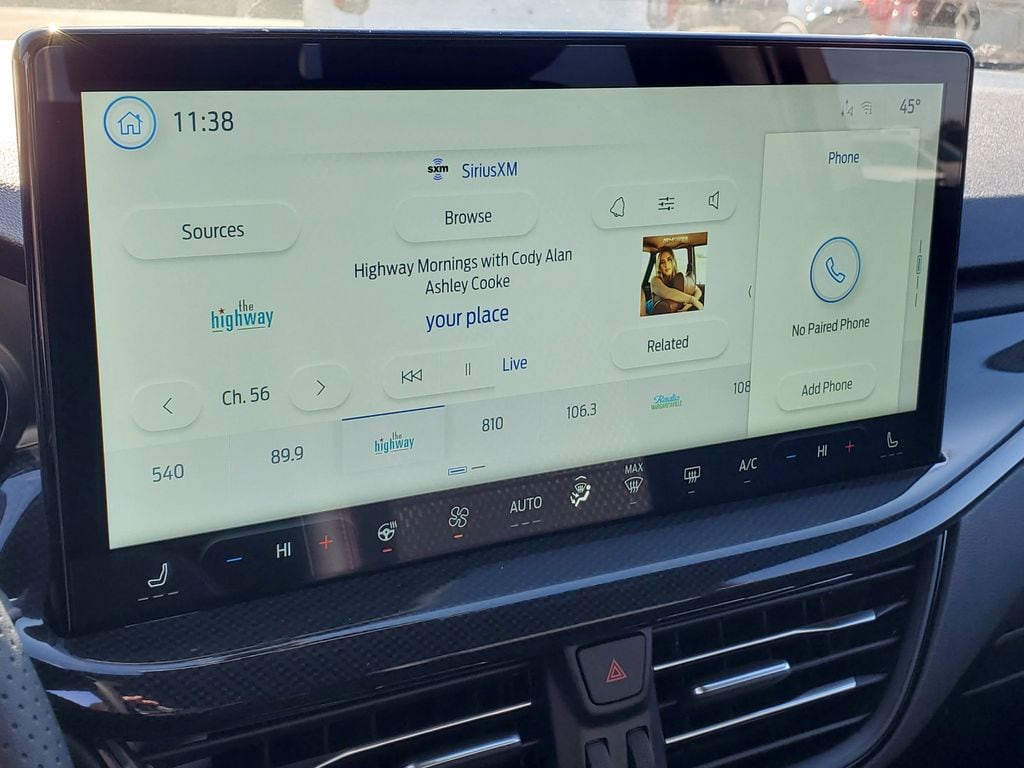 This Vehicles features Cold Weather Package (Heated Front Row Seats, Heated Sideview Mirrors, Heated Steering Wheel, and Remote Starter System), Equipment Group 300A (3.81 Axle Ratio, Ford App, SYNC 4, and Wheels: 18" Rock Metallic Painted Aluminum), Tech Pack #1 (Ford Co-Pilot360 Assist+, Intersection Assist, Predictive Speed Assist, and Rear Parking Sensor), AWD, 4-Wheel Disc Brakes, 6 Speakers, ABS brakes, Air Conditioning, Alloy wheels, Auto High-beam Headlights, Automatic temperature control, Brake assist, Bumpers: body-color, Compass, Delay-off headlights, Driver door bin, Driver vanity mirror, Dual front impact airbags, Dual front side impact airbags, Electronic Stability Control, Emergency communication system: SYNC 4 911 Assist, Four wheel independent suspension, Front anti-roll bar, Front Bucket Seats, Front Center Armrest, Front dual zone A/C, Front reading lights, Fully automatic headlights, Illuminated entry, Knee airbag, Low tire pressure warning, Occupant sensing airbag, Outside temperature display, Overhead airbag, Overhead console, Panic alarm, Passenger door bin, Passenger vanity mirror, Power door mirrors, Power driver seat, Power Liftgate, Power steering, Power windows, Radio data system, Rear anti-roll bar, Rear reading lights, Rear seat center armrest, Rear window defroster, Rear window wiper, Remote keyless entry, Speed control, Speed-sensing steering, Speed-Sensitive Wipers, Split folding rear seat, Spoiler, Sport steering wheel, Steering wheel mounted audio controls, Tachometer, Telescoping steering wheel, Tilt steering wheel, Traction control, Trip computer, and Variably intermittent wipers. 26/32 City/Highway MPG