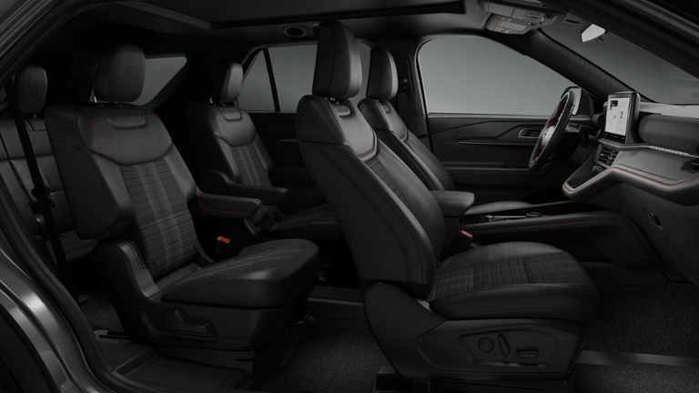 This Vehicles features Equipment Group 300A Standard Package (Heated Unique Cloth Captain's Chairs, Radio: B&O Sound System by Bang and Olufsen, and Wheels: 20" Ebony-Painted Machined Aluminum), 4WD, 10 Speakers, 2nd Row Captain's Chairs w/E-Z Entry and Armrest, 3rd row seats: bench, 4-Wheel Disc Brakes, ABS brakes, Air Conditioning, Alloy wheels, AM/FM radio: SiriusXM with 360L, Apple CarPlay/Android Auto, Auto High-beam Headlights, Automatic temperature control, Black Painted Roof, BlueCruise (equipment + 1-Year + 90-Day Plan), BlueCruise Hardware, Brake assist, Bumpers: body-color, Compass, Delay-off headlights, Driver door bin, Driver vanity mirror, Dual front impact airbags, Dual front side impact airbags, Electronic Stability Control, Emergency communication system: 911 Assist, Exterior Parking Camera Rear, Four wheel independent suspension, Front and 2nd Rows Floor Liners with Carper Floor Mats, Front anti-roll bar, Front Bucket Seats, Front Center Armrest, Front dual zone A/C, Front fog lights, Front reading lights, Fully automatic headlights, Garage door transmitter, Heated door mirrors, Heated front seats, Heated steering wheel, Illuminated entry, Knee airbag, Leather steering wheel, Low tire pressure warning, Navigation System, Occupant sensing airbag, Outside temperature display, Overhead airbag, Overhead console, Panic alarm, Panoramic Fixed Glass Roof with Power Shade, Passenger door bin, Passenger vanity mirror, Power door mirrors, Power driver seat, Power Liftgate, Power passenger seat, Power steering, Power windows, Rear air conditioning, Rear anti-roll bar, Rear reading lights, Rear window defroster, Rear window wiper, Remote keyless entry, Security system, Speed control, Speed-sensing steering, Speed-Sensitive Wipers, Split folding rear seat, Spoiler, Steering wheel mounted audio controls, Tachometer, Telescoping steering wheel, Tilt steering wheel, Traction control, Trip computer, and Variably intermittent wipers. 20/27 City/Highway MPG