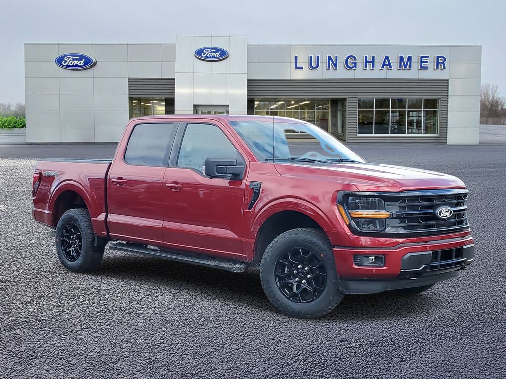 This Vehicles features Equipment Group 302A Mid (18" Painted Aluminum Wheels, 3.55 Axle Ratio, 360 Degree Camera, 400W Pro Power Onboard (cab & Bed), Adaptive Cruise Control with Stop and Go, AEB Oncoming, Auto-Dimming Rear-View Mirror, Body-Color Door Handles, Chrome Front and Rear Bumpers, Cloth 40/20/40 Front Seat, Dual-Zone Electronic Automatic Temperature Control, Ford Co-Pilot360 Assist 2.0, Front Parking Sensors, Heated Front Seats, Intelligent Access with Push Button Start, Power Glass Heated Sideview Mirrors, Power-Sliding Rear Window, Radio: AM/FM Stereo with SiriusXM 360L, Remote Start System with Remote Tailgate Release, SYNC 4 with Enhanced Voice Recognition, Towing Technology, and Wrapped Steering Wheel), Ford Connectivity Package (1-Year Included), GVWR: 6,650 lbs Payload Package, Internet access capable: 5G Modem - Ford Connectivity Package, XLT Black Appearance Package (6" Black Running Boards, Black Exterior Badging, Black Grille, Body-Color Front and Rear Bumpers, Dark Interior Appliques, Floor Shifter, Gray Box Side Decal, Unique Sport Cloth 40/Console/40 Front-Seats, and Wheels: 18" Gloss Black), 4WD, 4-Wheel Disc Brakes, 6 Speakers, ABS brakes, Air Conditioning, Alloy wheels, AM/FM radio: SiriusXM with 360L, Auto High-beam Headlights, Brake assist, Bumpers: body-color, Compass, Delay-off headlights, Driver door bin, Driver vanity mirror, Dual front impact airbags, Dual front side impact airbags, Electronic Stability Control, Emergency communication system: SYNC 4 911 Assist, Front anti-roll bar, Front Center Armrest, Front fog lights, Front reading lights, Front wheel independent suspension, Fully automatic headlights, Heated door mirrors, Illuminated entry, Low tire pressure warning, Occupant sensing airbag, Outside temperature display, Overhead airbag, Overhead console, Panic alarm, Passenger door bin, Passenger vanity mirror, Power door mirrors, Power steering, Power windows, Radio data system, Rear Parking Sensors, Rear reading lights, Rear step bumper, Rear window defroster, Remote keyless entry, Security system, Speed control, Split folding rear seat, Steering wheel mounted audio controls, Tachometer, Telescoping steering wheel, Tilt steering wheel, Traction control, Trip computer, and Variably intermittent wipers. Ready for delivery!