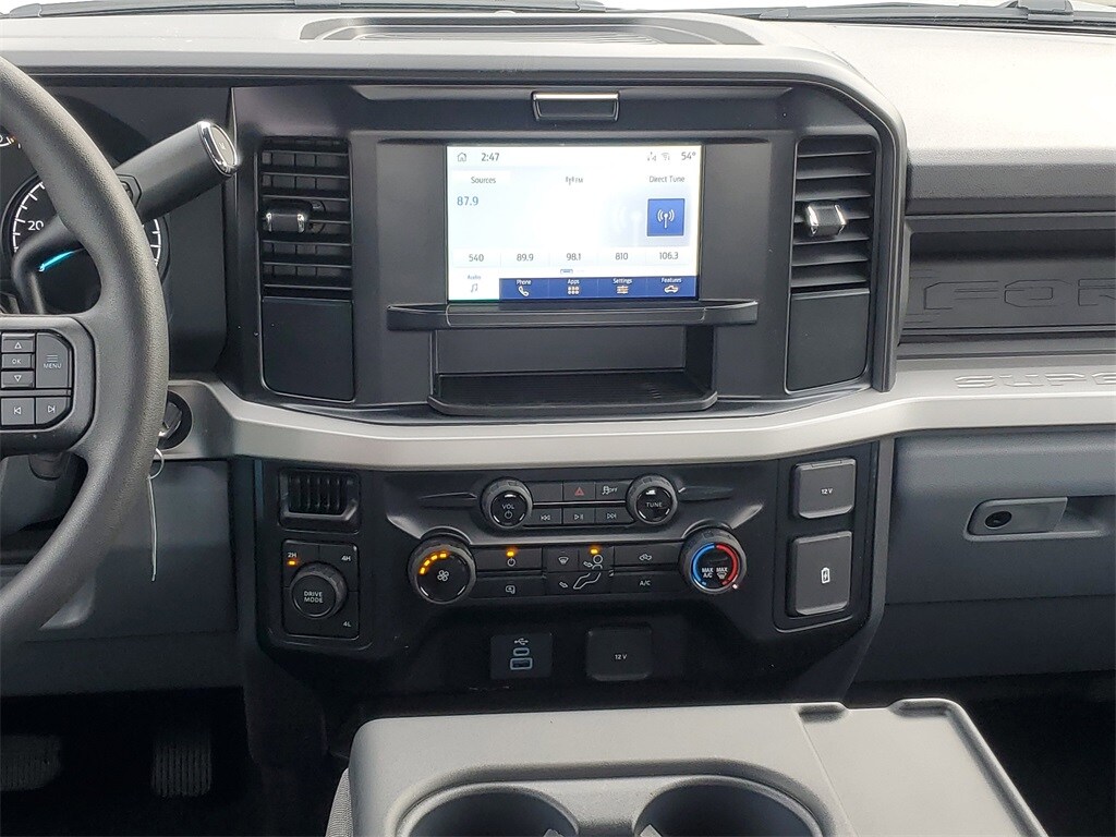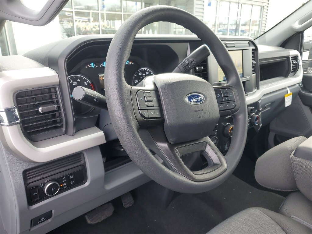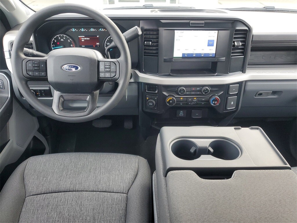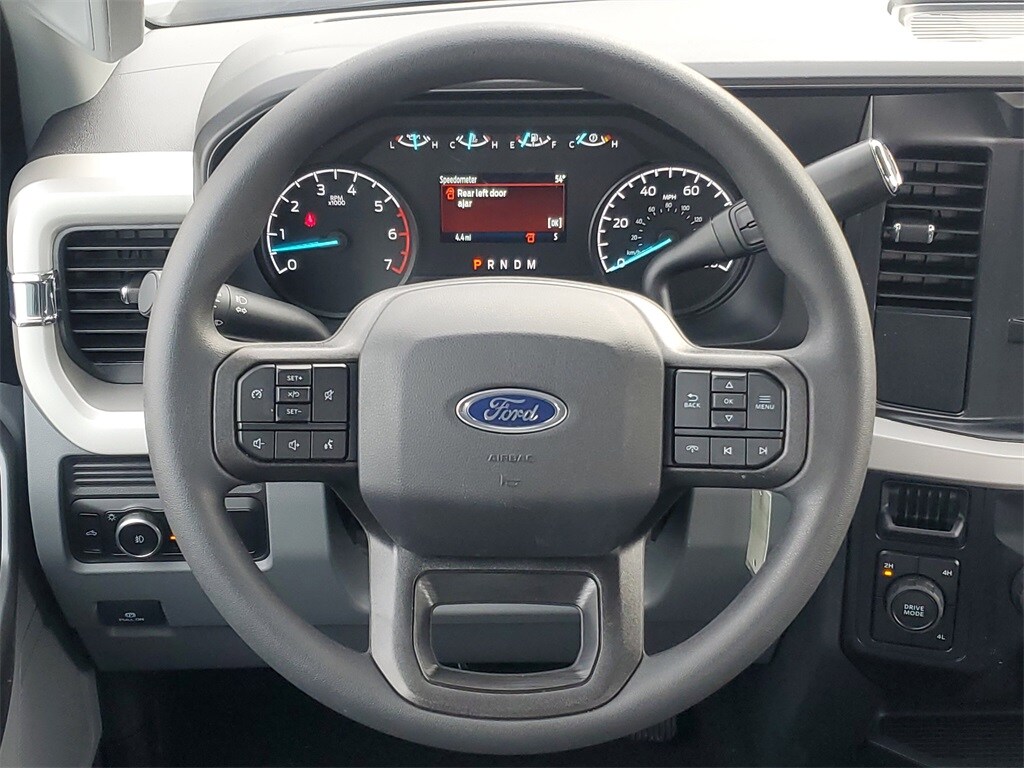 This Vehicles features 5th Wheel/Gooseneck Hitch Prep Package, Ford Connectivity Package (1-Year Included), GVWR: 10,000 lb Payload Package, Internet access capable: 5G Modem - Ford Connectivity Package, Order Code 600A, STX Appearance Package (Body-Color Front Bumper, Body-Color Rear Bumper, Cloth 40/20/40 Split Bench Seat, Color-Coordinated Full Carpet w/Floor Mats, LED Fog Lamps, Painted Grille, and Wheels: 18" Ebony Black Painted Aluminum), 4WD, 17" Argent Painted Steel Wheels, 3.73 Axle Ratio, 4-Wheel Disc Brakes, 6 Speakers, ABS brakes, Air Conditioning, AM/FM radio, AM/FM Stereo w/MP3 Player, Brake assist, Compass, Delay-off headlights, Dual front impact airbags, Dual front side impact airbags, Electronic Stability Control, Emergency communication system: SYNC 4 911 Assist, Exterior Parking Camera Rear, Front anti-roll bar, Front Center Armrest w/Storage, Front reading lights, Fully automatic headlights, HD Vinyl 40/20/40 Split Bench Seat, Heated door mirrors, Illuminated entry, Low tire pressure warning, Outside temperature display, Overhead airbag, Overhead console, Panic alarm, Passenger vanity mirror, Platform Running Boards, Power door mirrors, Power steering, Power windows, Rear reading lights, Rear step bumper, Remote keyless entry, Remote Start System, Security system, Speed control, Split folding rear seat, Steering wheel mounted audio controls, SYNC 4, Tachometer, Telescoping steering wheel, Tilt steering wheel, Traction control, Trip computer, Turn signal indicator mirrors, and Variably intermittent wipers.