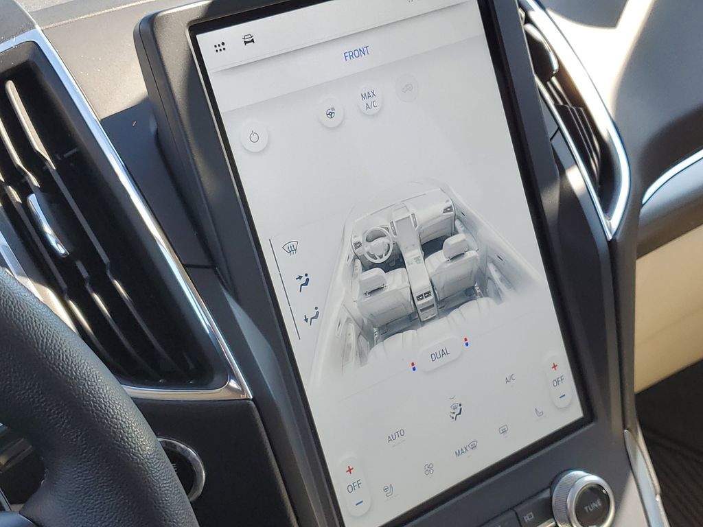 Step inside the cabin and you'll be greeted by a wealth of premium features, including a stunning panoramic vista roof, a powerful B&O sound system, and SYNC 4A with enhanced voice recognition. Sink into the plush leather-trimmed heated sport bucket seats and enjoy the convenience of the power liftgate and memory seat settings. The Class II Trailer Tow Package further expands the Edge's versatility, allowing you to tow with ease.