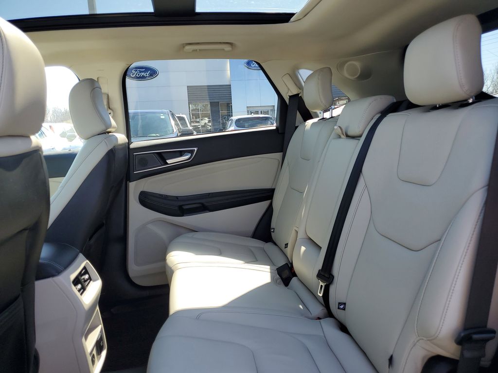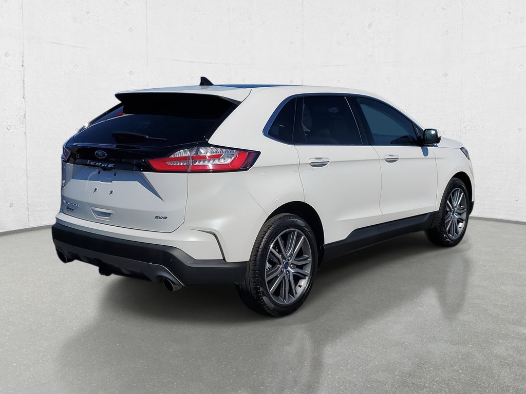 Powered by the EcoBoost 2.0L I4 GTDi DOHC Turbocharged VCT engine, this Edge Titanium delivers exhilarating acceleration and impressive fuel efficiency, with an EPA-estimated 21 MPG in the city and 28 MPG on the highway. The 8-speed automatic transmission and all-wheel-drive system ensure a seamless and confident driving experience, no matter the conditions.