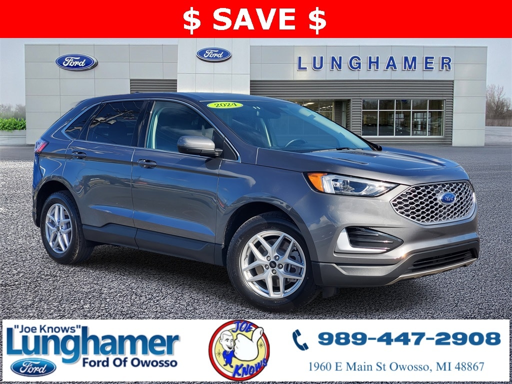 Carbonized Gray Metallic 2024 Ford Edge SEL AWD 8-Speed Automatic EcoBoost 2.0L I4 GTDi DOHC Turbocharged VCT 2024 Ford Edge, *AWD*, *ONE OWNER*, Edge SEL, 4D Sport Utility, EcoBoost 2.0L I4 GTDi DOHC Turbocharged VCT, 8-Speed Automatic, AWD, Carbonized Gray Metallic, Ebony w/ActiveX Trimmed Heated Bucket Seats, ActiveX Trimmed Heated Bucket Seats, Equipment Group 201A, Power driver seat, Power Liftgate, Power passenger seat, Power windows, Wheels: 18" Sparkle Silver-Painted Aluminum.
