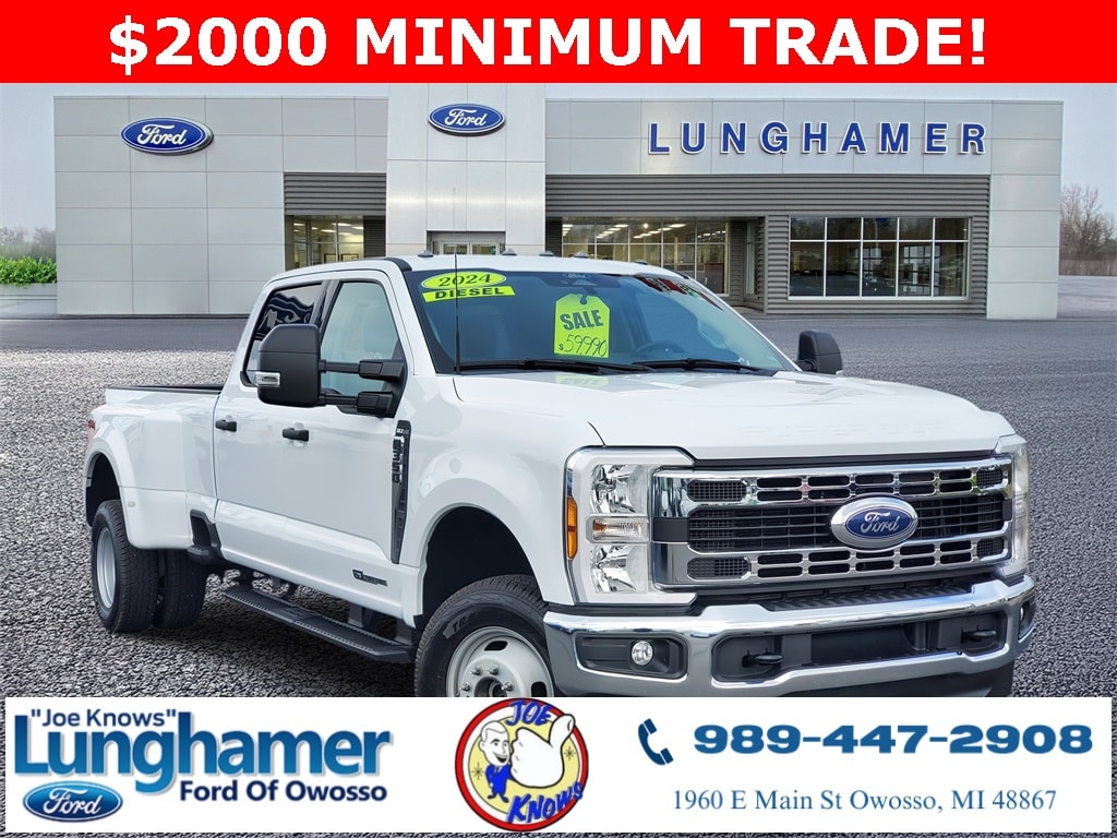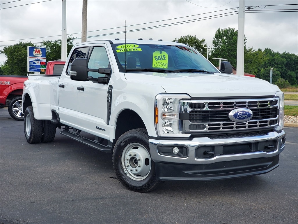 Oxford White 2024 Ford F-350SD XLT DRW 4WD 10-Speed Automatic Power Stroke 6.7L V8 DI 32V OHV Turbodiesel 2024 Ford F-350SD, *4X4*, *ONE OWNER*, *TOWING PACKAGE*, *FULLY DETAILED*, *BACK UP CAMERA*, DUAL REAR WHEELS!, MUST SEE!, F-350 SuperDuty XLT DRW, 4D Crew Cab, Power Stroke 6.7L V8 DI 32V OHV Turbodiesel, 10-Speed Automatic, 4WD, Oxford White, Medium Dark Slate w/Cloth 40/20/40 Split Bench Seat, 3.55 Axle Ratio, 5th Wheel/Gooseneck Hitch Prep Package, Air Conditioning, AM/FM radio: SiriusXM with 360L, Cloth 40/20/40 Split Bench Seat, Dual rear wheels, Exterior Parking Camera Rear, Fully automatic headlights, GVWR: 14,000 lb Payload Package, Order Code 623A, Power windows, Speed control, Tilt steering wheel, Tough Bed Spray-In Bedliner.