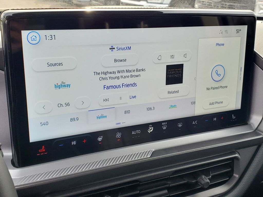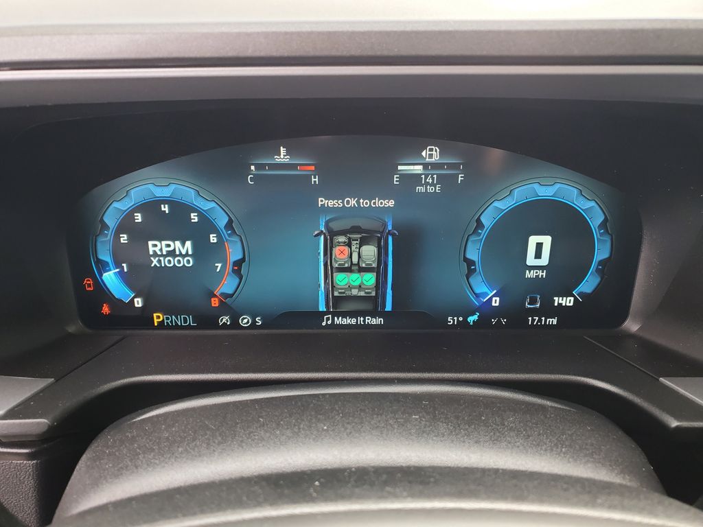 This Vehicles features 4-Wheel Disc Brakes, 6 Speakers, ABS brakes, Air Conditioning, Alloy wheels, AM/FM radio: SiriusXM, AM/FM Stereo, Auto High-beam Headlights, Auto-dimming Rear-View mirror, Automatic temperature control, Brake assist, Compass, Delay-off headlights, Driver door bin, Driver vanity mirror, Dual front impact airbags, Dual front side impact airbags, Electronic Stability Control, Emergency communication system: SYNC 4 911 Assist, Four wheel independent suspension, Front & Rear Floor Liners w/o Carpet Mats, Front anti-roll bar, Front Bucket Seats, Front Center Armrest, Front Driver/Passenger Seat Back Map Pockets, Front dual zone A/C, Front fog lights, Front reading lights, Fully automatic headlights, Garage door transmitter, Heated door mirrors, Heated front seats, Heated steering wheel, Illuminated entry, Knee airbag, Low tire pressure warning, Memory seat, Occupant sensing airbag, Outside temperature display, Overhead airbag, Overhead console, Panic alarm, Passenger door bin, Passenger vanity mirror, Power door mirrors, Power driver seat, Power passenger seat, Power steering, Power windows, Premium Trimmed Front Bucket Seats w/Ebony/Roast, Radio data system, Rain sensing wipers, Rear anti-roll bar, Rear Parking Sensors, Rear reading lights, Rear seat center armrest, Rear window defroster, Rear window wiper, Remote keyless entry, Security system, SiriusXM, Speed control, Speed-sensing steering, Speed-Sensitive Wipers, Split folding rear seat, Steering wheel mounted audio controls, SYNC 4 w/Enhanced Voice Recognition, Tachometer, Telescoping steering wheel, Tilt steering wheel, Traction control, Trip computer, Variably intermittent wipers, and Wheels: 18" Ebony Black-Painted Aluminum. 25/30 City/Highway MPG