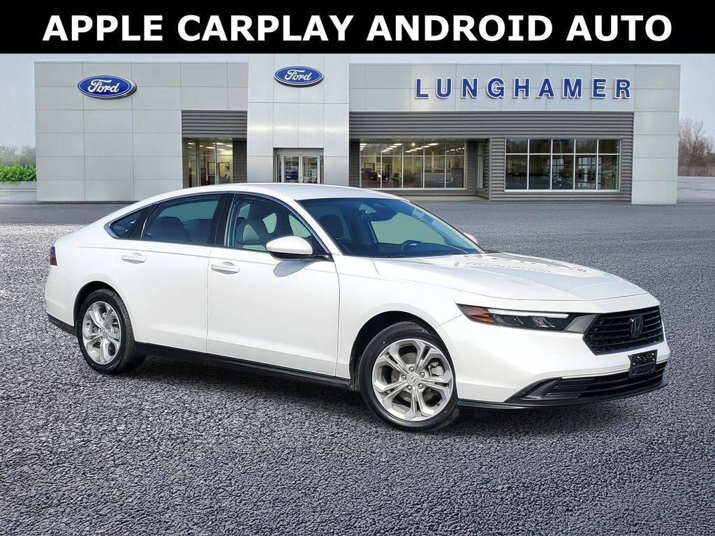 Platinum White Pearl 2023 Honda Accord LX FWD CVT 1.5T I4 DOHC 16V Turbocharged VTEC 2023 *BLUETOOTH*, *USB/AUX STEREO*, Adaptive Cruise Control, Lane Keeping Assist, ANDROID AUTO, APPLE CARPLAY, Lane Departure Warning, Accord LX, 1.5T I4 DOHC 16V Turbocharged VTEC, CVT, FWD, Platinum White Pearl, Black w/Fabric Seat Trim, Adaptive Cruise Control: Adaptive Cruise Control (ACC) with Low-Speed Follow, Apple CarPlay/Android Auto, Auto High-beam Headlights, Brake assist, Electronic Stability Control, Emergency communication system: HondaLink Assist, Fully automatic headlights, Lane departure: Lane Keeping Assist System (LKAS) active, Radio: 160-Watt AM/FM Audio System, Security system, Speed control, Steering wheel mounted audio controls.