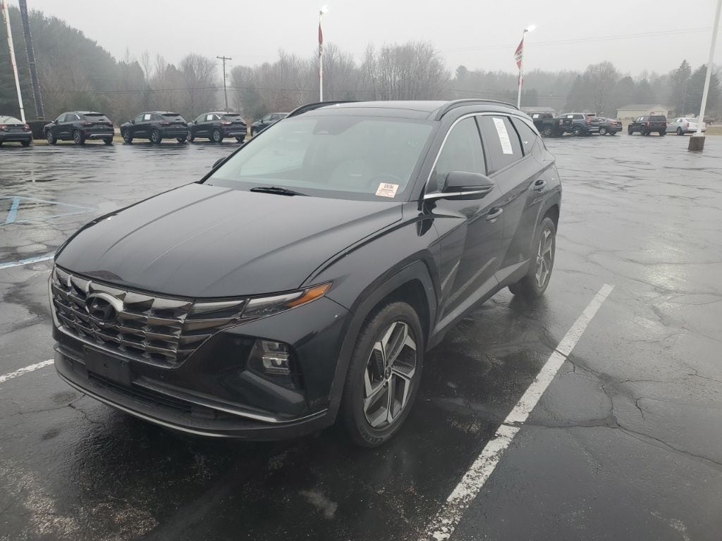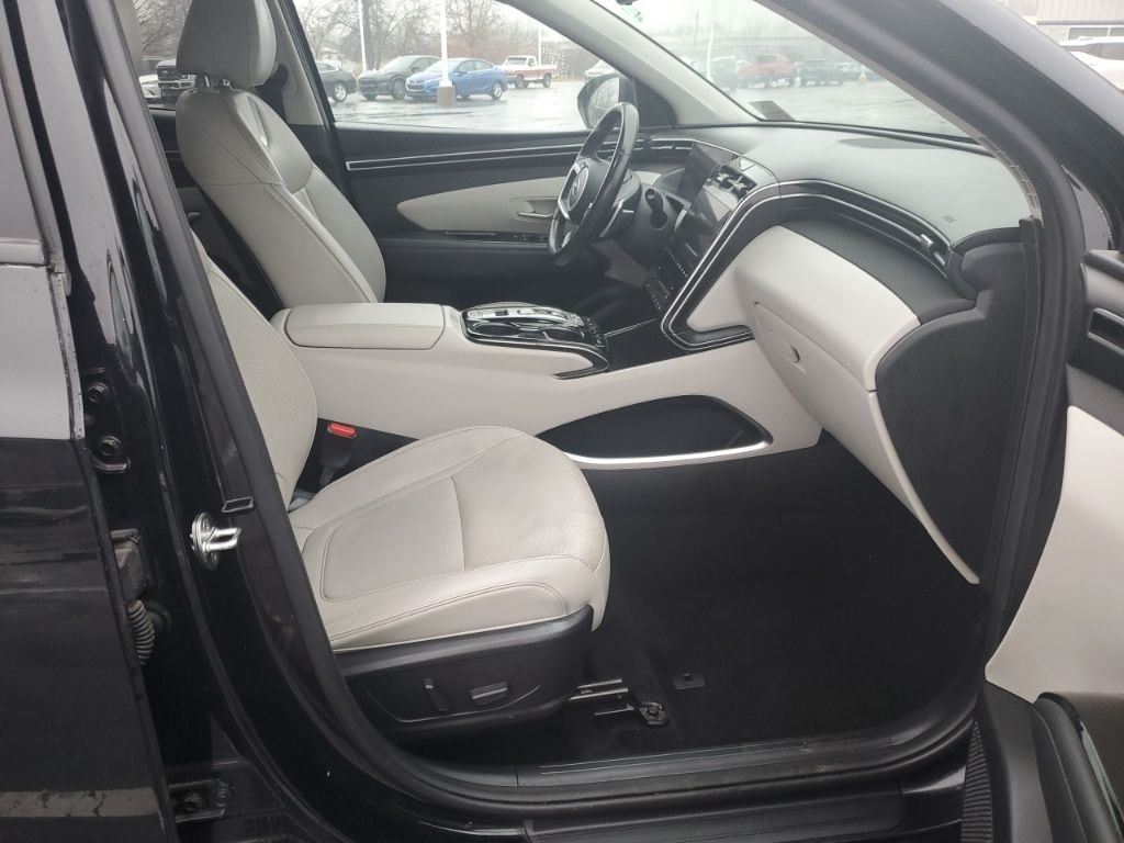 Phantom Black 2023 Hyundai Tucson Limited AWD 8-Speed Automatic with SHIFTRONIC 2.5L I4 DGI DOHC 16V LEV3-ULEV70 187hp *AWD*, *ONE OWNER*, *BLUETOOTH*, *NAVIGATION*, *POWER SUNROOF*, *LEATHER*, *HEATED SEATS*, *COOLED SEATS*, *USB/AUX STEREO*, *REMOTE START*, *BACK UP CAMERA*, Lane Keeping Assist, Blind-Spot Collision-Avoidance Assist, Rear Cross-Traffic Collision-Avoidance Assist, Wireless Device Charging, Bose® Premium Audio System, SiriusXM®, Android Auto, Apple CarPlay, Gray w/Leather Seat Trim.